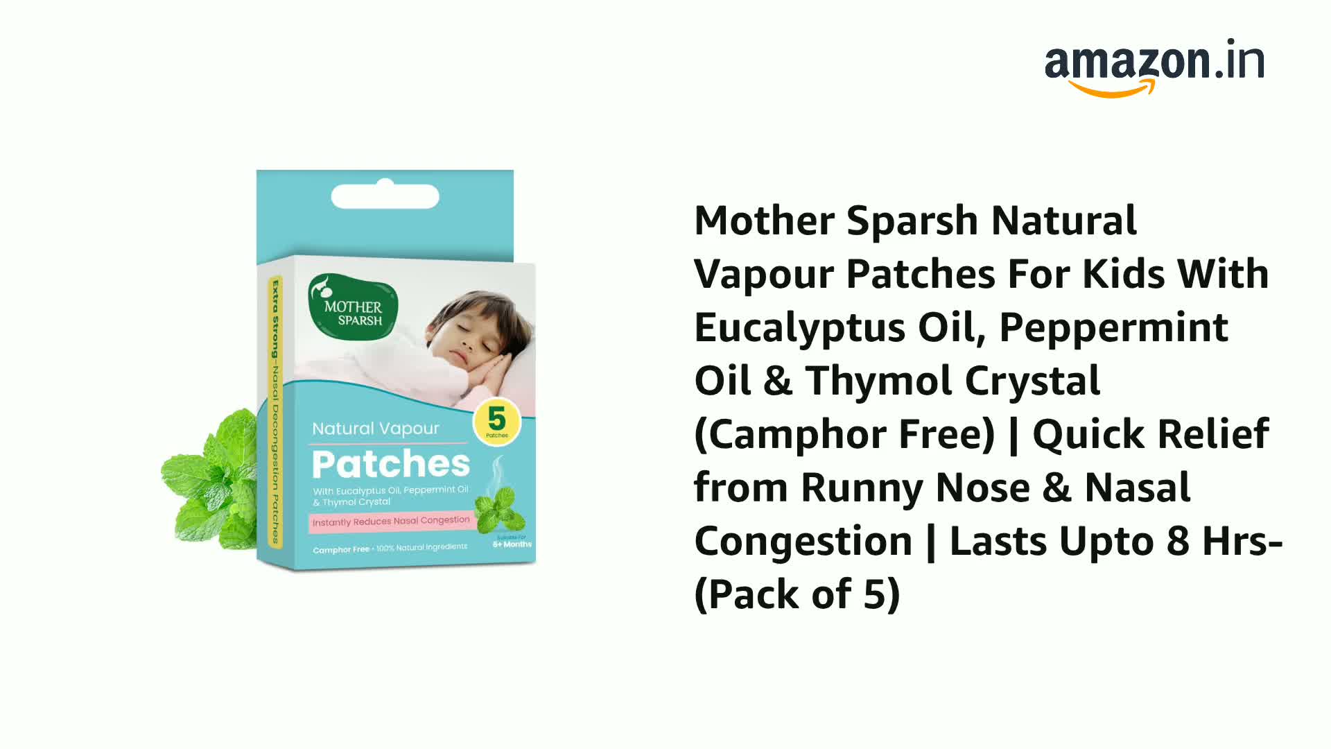 • Camphor-Free All-Natural Formulation: Mother Sparsh Natural Vapour Patches are designed to provide instant relief from nasal congestion. Crafted with soothing oils such as Eucalyptus Oil and Peppermint Oil these patches are safe for use with your child (S
