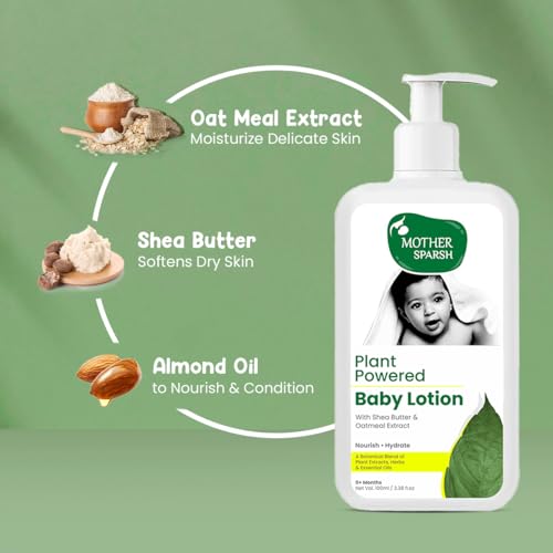 HYPOALLERGENIC SAFE FORMULA: Mother Sparsh Plant Powered Baby Lotion is curated keeping in mind the baby's tender skin. The safe and sensitive formulation has a mild fragrance that is allergen-free and reduces the chances of skin allergy and skin irritati