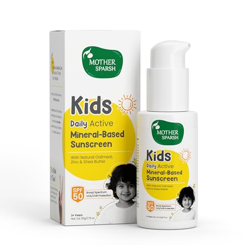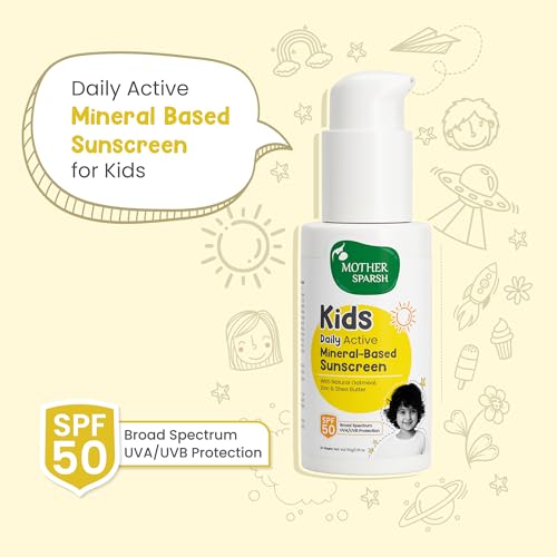 Mother Sparsh Sunscreen For Kids & Babies- 50g with Natural Oatmeal & Zinc | Daily Active Mineral-Based Baby Sunscreen Lotion with SPF 50 | Broad Spectrum, UVA/UVB Protection | Water & Sweat Resistant (3+ Yrs)