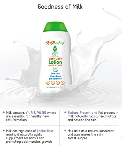 HomeBabyBath & SkinBaby Skin CareBaby LotionOYO BABY Baby Lotion for New Born Babies - 200ml with Olive Oil & Almond | Gentle Baby Lotion for Baby's Soft Skin | Body Lotion for Kids | Hypoallergenic, No Sulphates, No Parabens