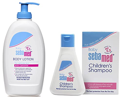 Sebamed Childrenâs Shampoo (50ml)Sebamed children's shampoo has ph of 5. 5 And has sugar based mild cleanser. Other children shampoos have ph greater 7 and chemicals like formaldehyde phthalates sls which leads to allergic reactions. At ph 5. 5 Alone the scalp barrier remains intact. It has been clinically proven that only at ph 5. 5 Scalp is hydrated and strengthens scalp for optimal hair growth. Lipid and moisture loss is minimum and the growth of malassezia which leads to dandruff is restricted. Sebamed children's shampoo is free from irritants and hence has 0 percent incidences of irritant reactions. Sebamed children's shampoo contains botanical ingredient hence the reported incidence of allergic reaction is 0. 000003 Percent. Only at ph5. 5 The baby's delicate eyes are not irritated and the tear free formula is free from formaldehyde. Sebamed children's shampoo is ideal for cradle cap seborrheic dermatitis and dandruff. Made in germany100 percent soap and alkali free especially mild cleansers for gentle cleansing without irritating the scalp or hair herbal extract of chamomile alleviates irritation and soothes the skin special âno tearsâ formula does not sting in the eyes leaves hair fragrant and silky pleasant botanical fragrance ideal from six month onwards clinically proven suitability for cleansing of hair and scalp in babies and infants with sensitive scalp was proven in the dermatological study. Users documented an excellent acceptance of the shampoo and 93 percent were willing to continue using it.Sebamed Baby Lotion 400mlSeamed baby lotion has a ph of 5. 5 And contain natural lipids. Conventional baby lotions have ph greater 7 and contains parabens and propylene glycol which can cause burning sensation and skin irritation. Seamed baby lotion contains 7 percent natural lipids plus lecithin plus sorbitol ensures long lasting hydration. Sebamed baby lotion has easy spread ability without leaving an oily film. Made in Germany gentle protection for delicate baby skin moisturizing and emollient complex safeguard against dryness allantoin makes the skin smooth and supple chamomile soothes the skin rapidly absorbed without greasy residue7 percent lipid compound oil in water emulsion supports the natural lipid balance pleasant botanical fragrance ideal from 7 day onwards clinically proven 16 percent increase in skin hydration within 3 weeks.