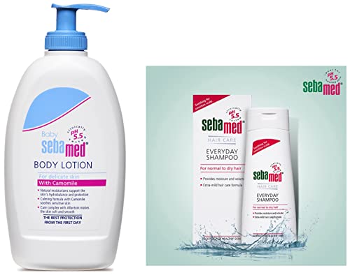 SebaMed Baby Body Lotion For All Skin Types 400 mlSeamed baby lotion has a ph of 5. 5 And contain natural lipids. Conventional baby lotions have ph greater 7 and contains parabens and propylene glycol which can cause burning sensation and skin irritation. Seamed baby lotion contains 7 percent natural lipids plus lecithin plus sorbitol ensures long lasting hydration. Sebamed baby lotion has easy spread ability without leaving an oily film. Made in Germany gentle protection for delicate baby skin moisturizing and emollient complex safeguard against dryness allantoin makes the skin smooth and supple chamomile soothes the skin rapidly absorbed without greasy residue7 percent lipid compound oil in water emulsion supports the natural lipid balance pleasant botanical fragrance ideal from 7 day onwards clinically proven 16 percent increase in skin hydration within 3 weeks.Sebamed Everyday Shampoo 200mlDeveloped by dermatologists this botanically-based shampoo protects the natural balance of your hair and scalp. Gentle enough for daily use this mild formula will not strip natural oils or irritate scalp as soap-based shampoos can. Helps maintain the intrinsic structural integrity of your hair enhancing sheen and leaving hair soft and healthy looking.