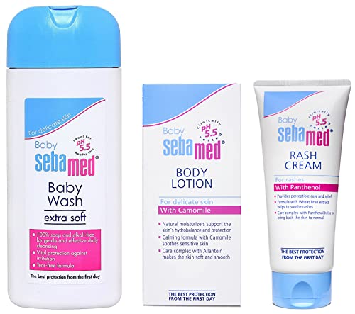 Sebamed Baby Body Lotion|Ph 5.5|Camomile & Allantoin| Dermatalogically tested| Sensitive skin & Sebamed Baby Rash Cream 100ml |Ph 5.5|Panthenol & Allantoin|Clinically testedBaby Sebamed Gentle Wash
