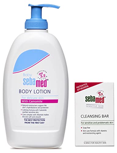 Sebamed Baby Lotion 100mldiv class="aplus"It is very important to keep a babyâs skin clean and moisturised. There are several baby care products that contain harsh chemicals and using these on his/her delicate skin can be harmful for such soft and sensitive skin. Babies should therefore be treated with utmost care and maintaining cleanliness is a must to maintain his/her health and growth. Sebamed body oil is ideal for infants from 0 to 10 years. It is so mild and soft that it can be used to clean the baby as soon as the umbilical cord is cut. Babies tend to develop skin problems like irritation itchiness dryness rashes and redness in no time. Sebamed oil is therefore a perfect solution to all such skin complications. Sebamed Baby Lotion keeps the skin soft and well moisturised in all weather conditions. Regular application keeps your babyâs skin healthy and glowing. In fact it works wonders for kids suffering from neurodermatitis. It has sugar tensed complex that moisturises the skin deep within thereby giving it a complete cover and shine. The lotion is free from skin alkali dioxin and paraben so that the sensitive skin of your little one doesnât fall prey to side effects. It absorbs within the skin cells thereby leading to a non-greasy and dry skin. The Sebamed oil can be used many times in a day since you are required to constantly change the diapers in order to keep the bottom area of the baby clean and moisturised. Changing diapers leads to redness and pimples that keep babies uncomfortable throughout the day. Sebamed oil can therefore score high in this context since it has healing properties 100% soap-free and clinically tested.. Moreover it comes in a 100ml bottle which is sufficient enough to go for a month. So if you have been looking for a baby oil this is surely going to prove worthy for your babyâs sensitive skin.Wonderfully Soft and Smooth Skin Keep your little newborn's skin moisturized all day long with the Sebamed baby lotion. This mild and clinically proven body lotion can be used for cleansing newborn babies before the umbilical cord is removed. It nourishes your baby's skin keeping it soft and supple. The tender skin of tiny tots needs a lot of care to prevent skin irritation and dryness the Sebamed baby lotion 100ml is worth a try to combat these conditions. You can apply this lotion on your baby's skin from day one to keep it wonderfully soft and smooth. It can also be used on children suffering with neurodermatitis.Easy to Apply Nourishing Formula Sugar tensid complex present in this extremely mild cleansing agent protects the newborn's skin from dryness. Its pleasant texture nourishes your little one's skin naturally. Apply and massage this baby Sebamed lotion gently and evenly on your baby's face and body to ensure a good peaceful sleep. It is dioxan- alkali- and paraben-free and so you can be sure that your baby is safe and protected with this lotion. Try the nourishing formula of this lotion to keeps your baby's skin soft and supple always. Apply this Sebamed lotion baby every day after a bath or a diaper change for a healthy happy baby. Brand: Sebamed Age: Newborn and up Allantoin makes the skin soft and smooth High skin tolerability Clinically tested 100 % Soap and Alkali free Content: 200 ml Sebamed Baby Cream Extra Soft 50mlPh 5. 5 + 42% Natural lipids maintain and repair protective skin barrier. Conventional creams have ph 7 which can further damage the skin barrier leading to more dryness. Sebamed baby cream is clinically proven to be effective in atopic babies and soothes baby's sensitive skin. Made in Germany forms a non-occlusive protective film against dryness and irritation rich in panthenol allantoin and chamomile extract the moisturizing and protective complex soothes and regenerates irritated skin easy to apply and readily absorbed42% lipid composition water-in-oil emulsion supports the natural lipid balance pleasant botanical fragrance ideal from one month onwards clinically proven â a significant improvement of erythema and rough skin in only eight weeks shown in studies. 56% Reduction in flaking / 2 times increase in lipid levels within 2 weeks * [*source: - adapted from sebapharma product manual sebapharma Germany]0% irritant reactions / almost 0% allergic reactions* [*source: - adapted from sebapharma product manual sebapharma Germany]