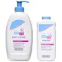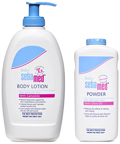 SebaMed Baby Body Lotion For All Skin Types 400 mlSeamed baby lotion has a ph of 5. 5 And contain natural lipids. Conventional baby lotions have ph greater 7 and contains parabens and propylene glycol which can cause burning sensation and skin irritation. Seamed baby lotion contains 7 percent natural lipids plus lecithin plus sorbitol ensures long lasting hydration. Sebamed baby lotion has easy spread ability without leaving an oily film. Made in Germany gentle protection for delicate baby skin moisturizing and emollient complex safeguard against dryness allantoin makes the skin smooth and supple chamomile soothes the skin rapidly absorbed without greasy residue7 percent lipid compound oil in water emulsion supports the natural lipid balance pleasant botanical fragrance ideal from 7 day onwards clinically proven 16 percent increase in skin hydration within 3 weeks.Sebamed Baby Powder 200gMicronized form of tio2 reduces the effect of rubbing and chafing. Absorbs extra moisture from baby's skin to help skin feel comfortable. Extra soft formula with Allentown helps in protecting baby's delicate skin against irritation. Olive oil present in seamed baby powder soothes and protects baby's skin from dryness. Made in Germany olive oil soothes and protects the baby's skin from dryness allantoin makes the skin soft and smooth pleasant botanical fragrance ideal from one month onwards0 percent irritant reactions and almost 0 percent allergic reactions.