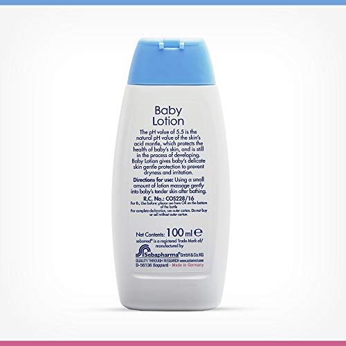 Sebamed Baby Lotion 400mlSeamed baby lotion has a ph of 5. 5 And contain natural lipids. Conventional baby lotions have ph greater 7 and contains parabens and propylene glycol which can cause burning sensation and skin irritation. Seamed baby lotion contains 7 percent natural lipids plus lecithin plus sorbitol ensures long lasting hydration. Sebamed baby lotion has easy spread ability without leaving an oily film. Made in Germany gentle protection for delicate baby skin moisturizing and emollient complex safeguard against dryness allantoin makes the skin smooth and supple chamomile soothes the skin rapidly absorbed without greasy residue7 percent lipid compound oil in water emulsion supports the natural lipid balance pleasant botanical fragrance ideal from 7 day onwards clinically proven 16 percent increase in skin hydration within 3 weeks.Sebamed Baby Lotion 100mldiv class="aplus"It is very important to keep a babyâs skin clean and moisturised. There are several baby care products that contain harsh chemicals and using these on his/her delicate skin can be harmful for such soft and sensitive skin. Babies should therefore be treated with utmost care and maintaining cleanliness is a must to maintain his/her health and growth. Sebamed body oil is ideal for infants from 0 to 10 years. It is so mild and soft that it can be used to clean the baby as soon as the umbilical cord is cut. Babies tend to develop skin problems like irritation itchiness dryness rashes and redness in no time. Sebamed oil is therefore a perfect solution to all such skin complications. Sebamed Baby Lotion keeps the skin soft and well moisturised in all weather conditions. Regular application keeps your babyâs skin healthy and glowing. In fact it works wonders for kids suffering from neurodermatitis. It has sugar tensed complex that moisturises the skin deep within thereby giving it a complete cover and shine. The lotion is free from skin alkali dioxin and paraben so that the sensitive skin of your little one doesnât fall prey to side effects. It absorbs within the skin cells thereby leading to a non-greasy and dry skin. The Sebamed oil can be used many times in a day since you are required to constantly change the diapers in order to keep the bottom area of the baby clean and moisturised. Changing diapers leads to redness and pimples that keep babies uncomfortable throughout the day. Sebamed oil can therefore score high in this context since it has healing properties 100% soap-free and clinically tested.. Moreover it comes in a 100ml bottle which is sufficient enough to go for a month. So if you have been looking for a baby oil this is surely going to prove worthy for your babyâs sensitive skin.Wonderfully Soft and Smooth Skin Keep your little newborn's skin moisturized all day long with the Sebamed baby lotion. This mild and clinically proven body lotion can be used for cleansing newborn babies before the umbilical cord is removed. It nourishes your baby's skin keeping it soft and supple. The tender skin of tiny tots needs a lot of care to prevent skin irritation and dryness the Sebamed baby lotion 100ml is worth a try to combat these conditions. You can apply this lotion on your baby's skin from day one to keep it wonderfully soft and smooth. It can also be used on children suffering with neurodermatitis.Easy to Apply Nourishing Formula Sugar tensid complex present in this extremely mild cleansing agent protects the newborn's skin from dryness. Its pleasant texture nourishes your little one's skin naturally. Apply and massage this baby Sebamed lotion gently and evenly on your baby's face and body to ensure a good peaceful sleep. It is dioxan- alkali- and paraben-free and so you can be sure that your baby is safe and protected with this lotion. Try the nourishing formula of this lotion to keeps your baby's skin soft and supple always. Apply this Sebamed lotion baby every day after a bath or a diaper change for a healthy happy baby. Brand: Sebamed Age: Newborn and up Allantoin makes the skin soft and smooth High skin tolerability Clinically tested 100 % Soap and Alkali free Content: 200 ml /ul