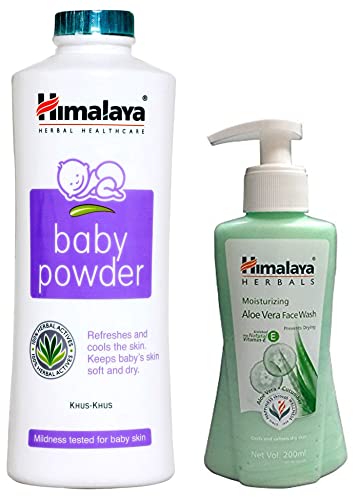 Himalaya Baby Powder (400g)Avoid using around babyâs eyes nose mouth and sensitive areas. Do not sprinkle directly onto babyâs skin to avoid accidental inhalation.Himalaya Moisturizing Aloe Vera Face Wash 200mlHimalaya's moisturizing aloe vera face wash is a soap-free formulation that replenishes lost moisture from your skin after every wash eradicating dry and stretched skin. It is enriched with cucumber which cools and soothes while aloe vera tones and softens your skin. Our moisturizing aloe vera face wash combines natural ingredients to cleanse your skin leaving it feeling fresh and glowing.