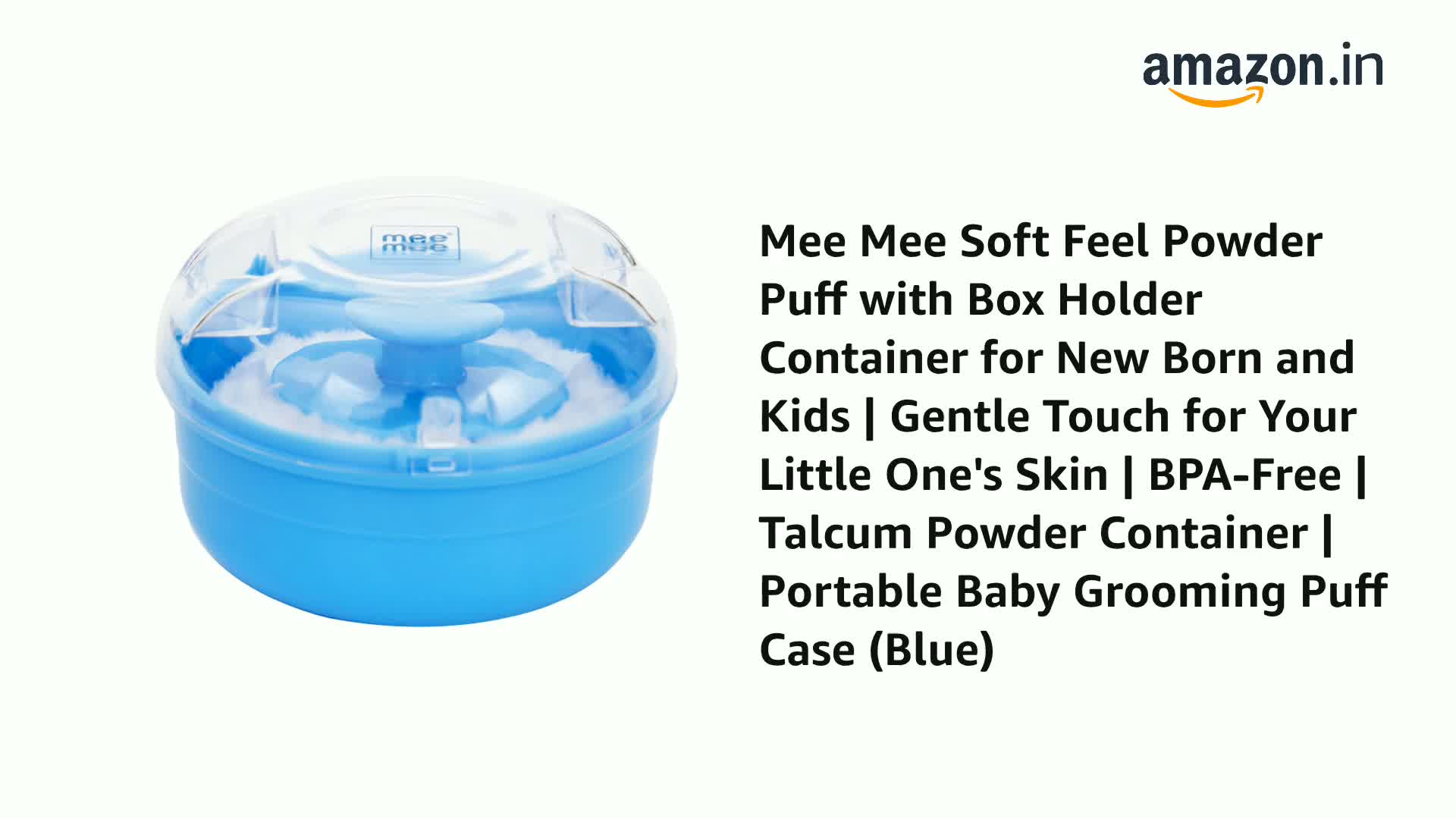 HomeBabyBath & SkinBaby Skin CareBaby PowderMee Mee Soft Feel Powder Puff with Box Holder Container for New Born and Kids | Gentle Touch for Your Little One's Skin | BPA-Free | Talcum Powder Container | Portable Baby Grooming Puff Case (Blue)