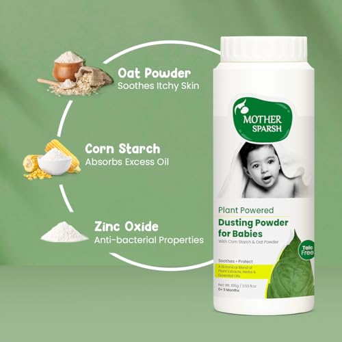 Mother Sparsh dusting powder is formulated with natural extracts which absorbs moisture on baby's skin naturally. This powder is talc free anti-microbial and hypoallergenic in nature. Naturally derived corn-starch provides a gentle way to soothe your baby's skin and leave it feeling soft smooth and comfortable. However fine Arrowroot powder helps to keep baby dry while soothing and softening the skin.