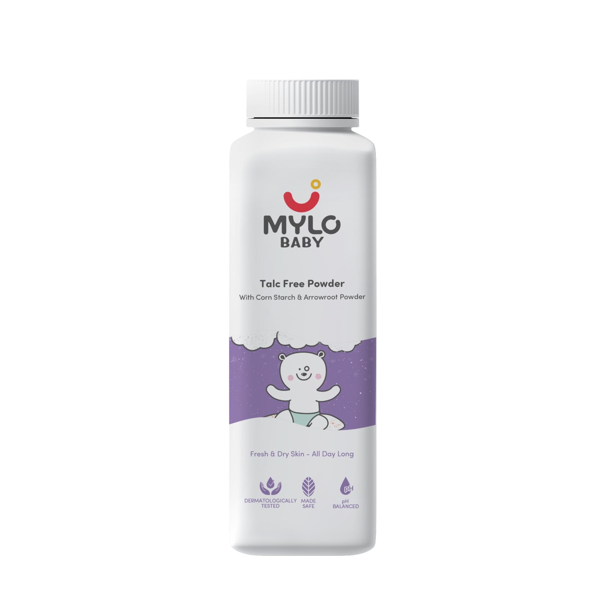 Mylo Baby Talc-Free Powder (300gm) with Corn Starch | Made Safe Certified | Absorbs Extra Oil, Relieves Itchiness & Softens Skin | Safe for All Skin Types