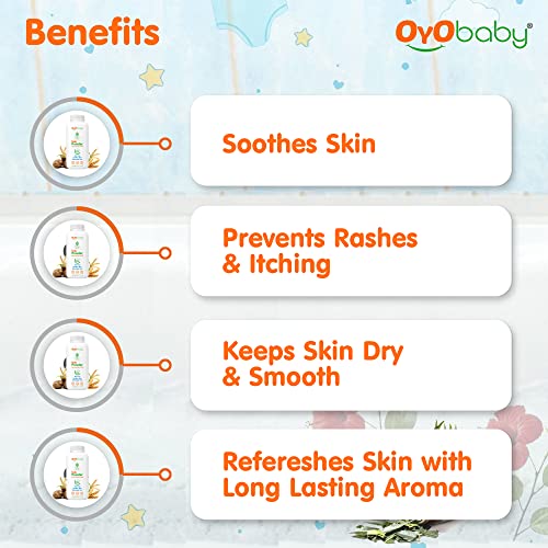 OYO BABY:- Talc Free baby powder for newborns absorbs excess moisture and keeps baby's skin comfortable and dry.
