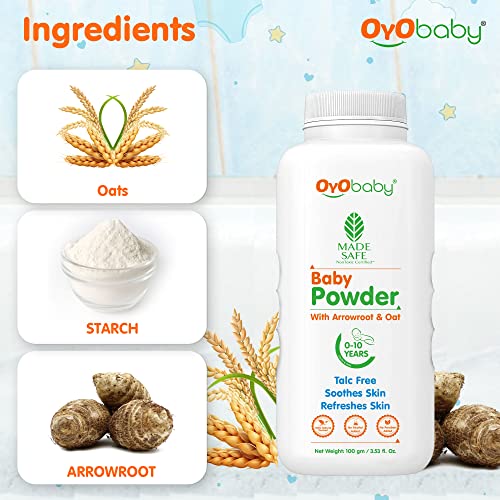 OYO BABY Talc Free Baby Powder | Soothes & Refreshes Skin | Baby Powder for New Born Baby Toddlers Kids Infants Baby With Oat Powder - Pack of 2 â 100gm