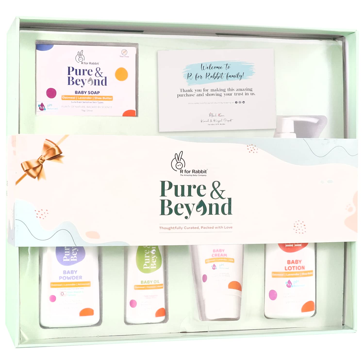 Get your gifting game on point for new moms baby showers and birthday parties with this exclusive gift box from R for Rabbit. Curated with the best baby care products this gift box has everything a mom needs to keep their babyâs skin nourished moisturized and protected. Made with the goodness of Oatmeal and Lavender R for Rabbitâs gifting combo is expert tested and can be used by even babies of sensitive skin type. Gift your loved ones ultimate purity with R for Rabbitâs gift box.