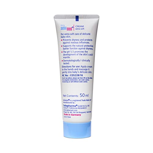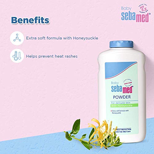 Sebamed Baby Cream Extra Soft 50mlPh 5. 5 + 42% Natural lipids maintain and repair protective skin barrier. Conventional creams have ph 7 which can further damage the skin barrier leading to more dryness. Sebamed baby cream is clinically proven to be effective in atopic babies and soothes baby's sensitive skin. Made in Germany forms a non-occlusive protective film against dryness and irritation rich in panthenol allantoin and chamomile extract the moisturizing and protective complex soothes and regenerates irritated skin easy to apply and readily absorbed42% lipid composition water-in-oil emulsion supports the natural lipid balance pleasant botanical fragrance ideal from one month onwards clinically proven â a significant improvement of erythema and rough skin in only eight weeks shown in studies. 56% Reduction in flaking / 2 times increase in lipid levels within 2 weeks * [*source: - adapted from sebapharma product manual sebapharma Germany]0% irritant reactions / almost 0% allergic reactions* [*source: - adapted from sebapharma product manual sebapharma Germany]Sebamed Baby Powder with HoneysuckleSebamed represents one of the leading brands for medicinal skin care with a pH value 5.5 of healthy skin. ll products of the sebamed range contain active ingredients which cleanse and nourish the skin without destroying the natural acid protection mantle. Baby sebamed powder with honeysuckle 200gm extra soft formula with honeysuckle helps prevent heat rashes.