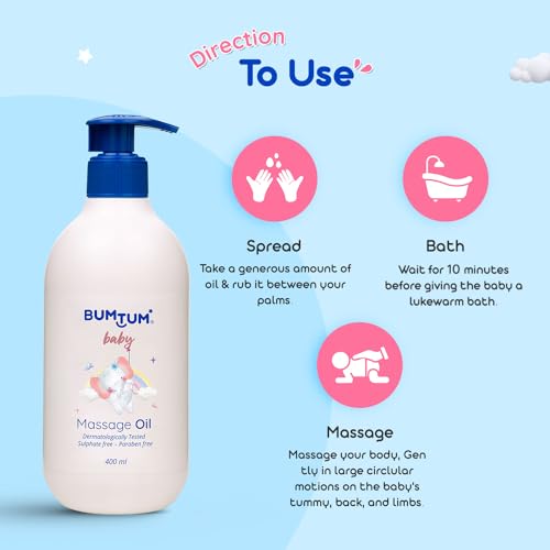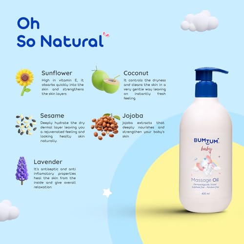 Bumtum Baby Massage Oil Natural For Babies/Child/Kids All Skin Type Nourishing, Sulphates & Parabens Free (Floral Fragrance, 400 ML, 0-5 Year)