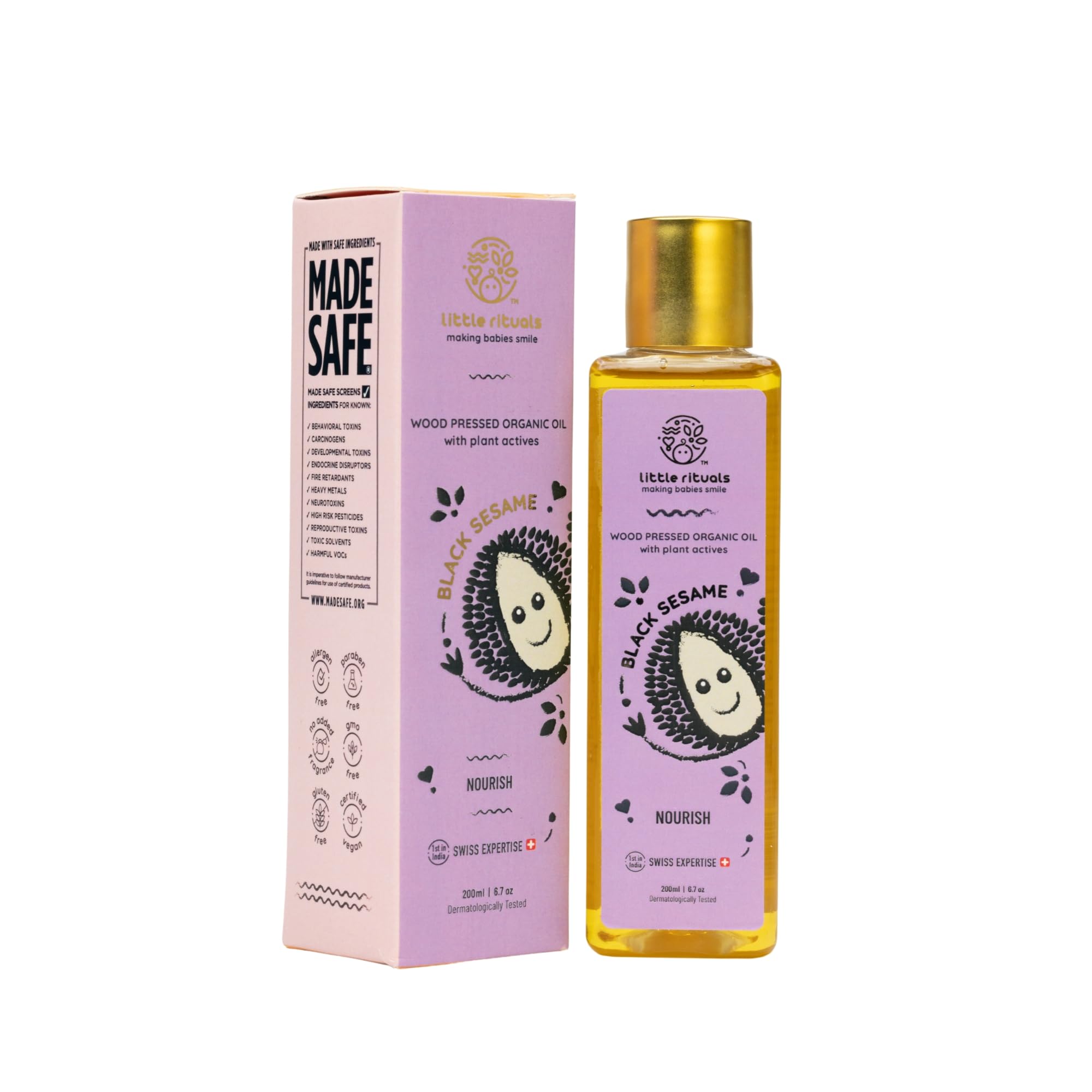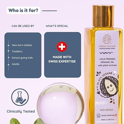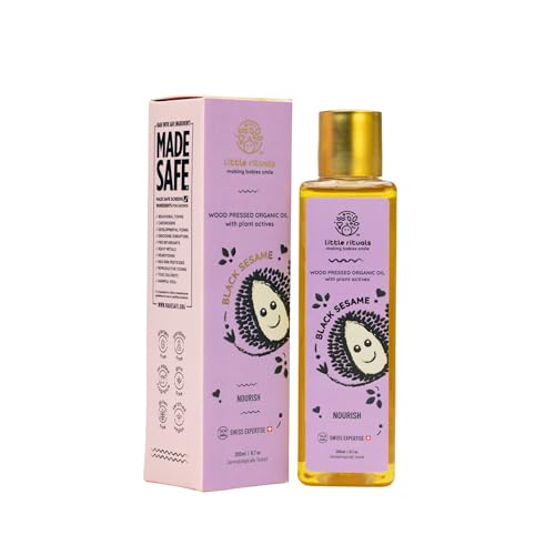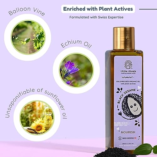 Little Rituals BLACK SESAME - BABY MASSAGE OIL Certified Organic, Wood Cold-Pressed for Skin and Hair with SWISS Plant Actives - 200 ml. Dermatologist Tested by Pediatrics, Mild & Gentle & Safe