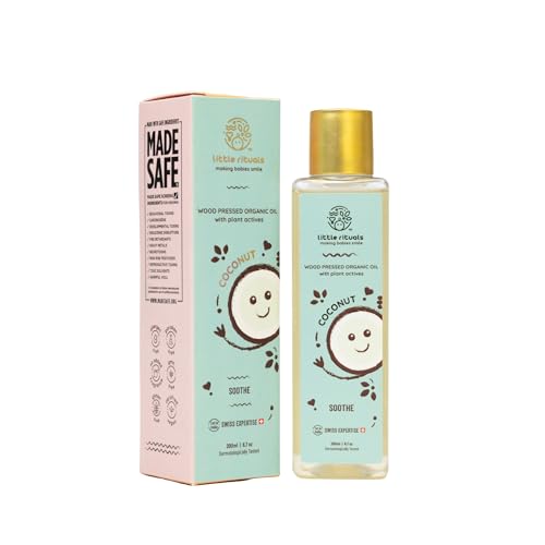 Little Rituals COCONUT BABY MASSAGE OIL Certified Organic, Wood Cold-Pressed for Skin and Hair with SWISS Plant Actives - 200 ml. Dermatologist Tested by Pediatrics, Mild & Gentle & Safe