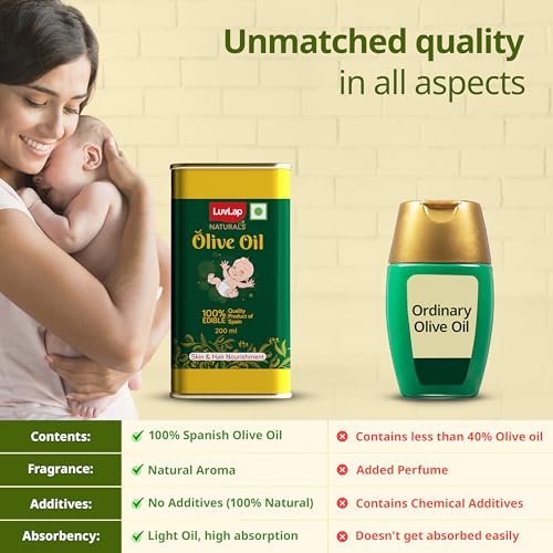 LuvLap Naturals Baby Body Massage Olive Oil, 200 ML, Spanish Premium Olive Oil, Enhances Bone & Muscle Strength, 200 ML