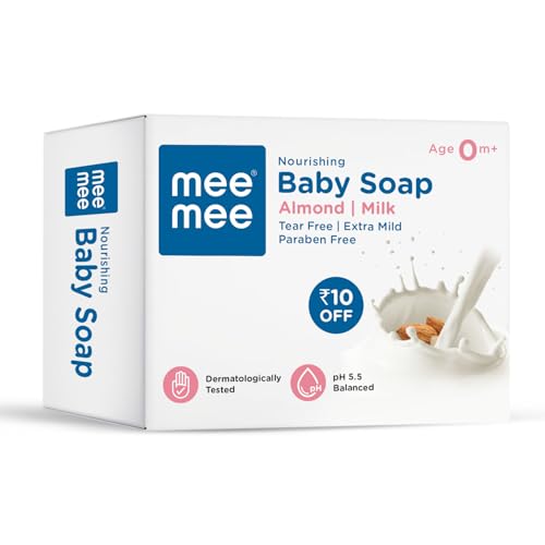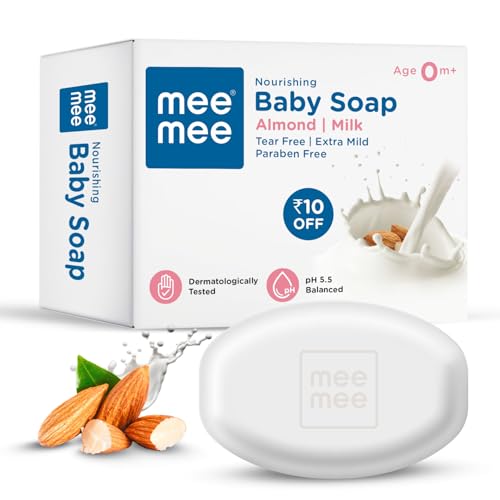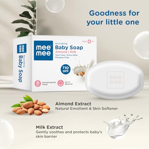 Mee Mee Nourishing Baby Soap for Bath Bar with 100% Natural Almond Oil & Milk Extract, Dermatologically Tested for Soft Baby Skin, 75 Gram