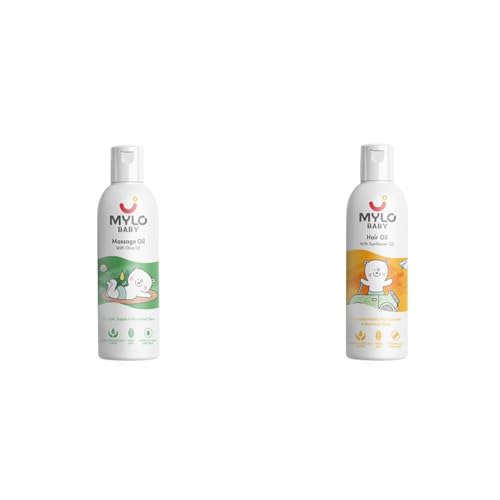 Mylo Baby Massage Oil (200 ml) & Mylo Baby Hair Oil 100 ml | Dermatologically Tested | With Pure Desi Ghee & Olive Oil | Made Safe Certified
