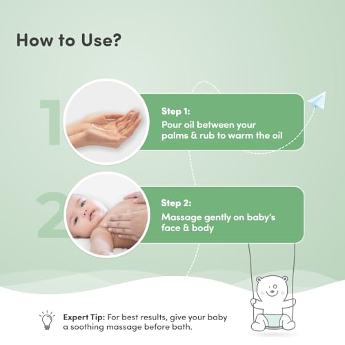 • NATURALLY FORMULATED: Our baby massage oil is especially formulated with natural ingredients and is also dermatologically tested making it absolutely safe for application on your baby's skin.