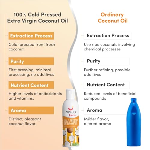 Mylo Cold Pressed Extra Virgin Coconut Oil 200ml Pack of 1 for Adults and Babies, 100% Pure Coconut Oil for Strong Hair and Soft Skin, Ideal for Baby Massage, No Parabens and Mineral Oils
