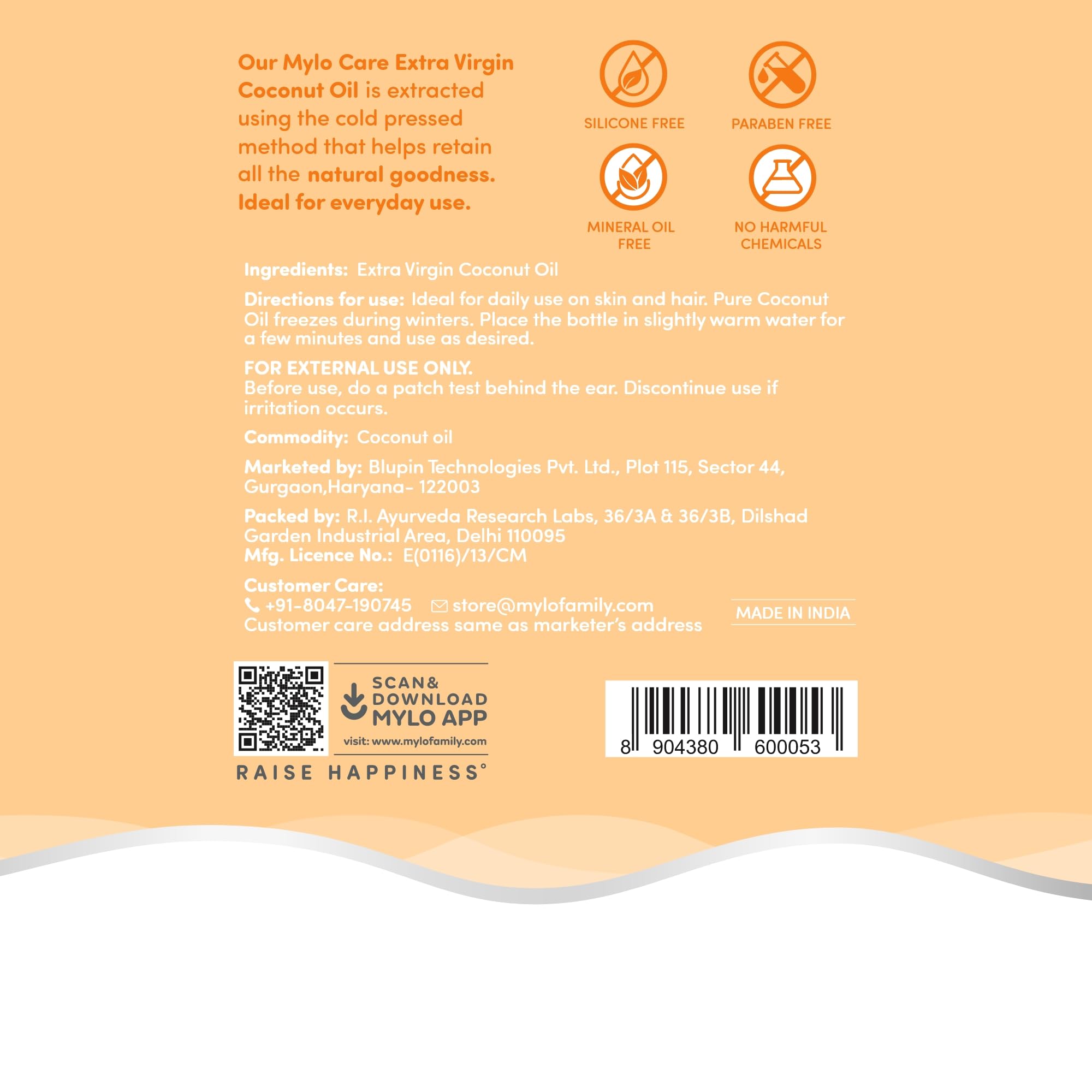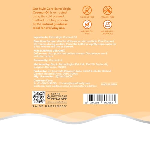 • MILD & GENTLE: Mylo Coconut oil is clinically tested to be hypoallergenic mild and gentle for a baby's delicate skin.