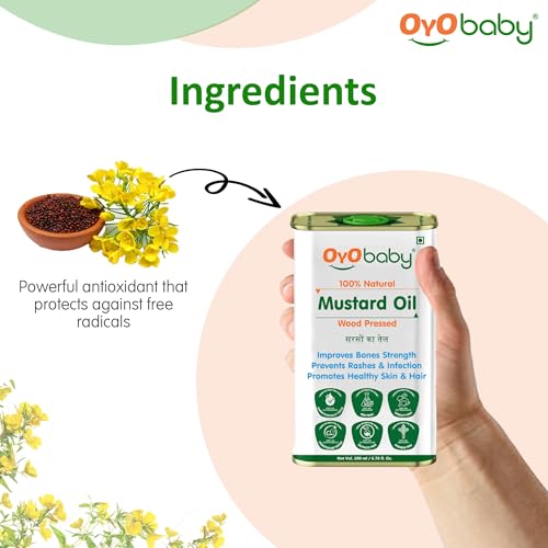 OYO BABY 100% Natural Wood Pressed Baby Hair Oil for New Born With Mustard Baby Oil | Mustard Oil For New Born Baby Massage, Skin & Hair Care | 200ml
