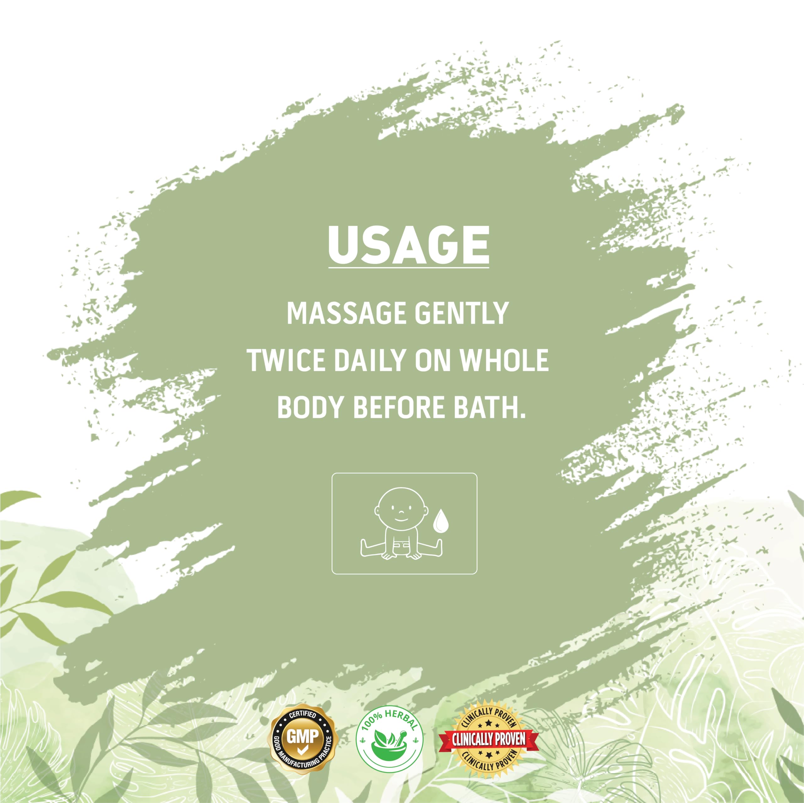 Massage gently twice daily on whole body before bath