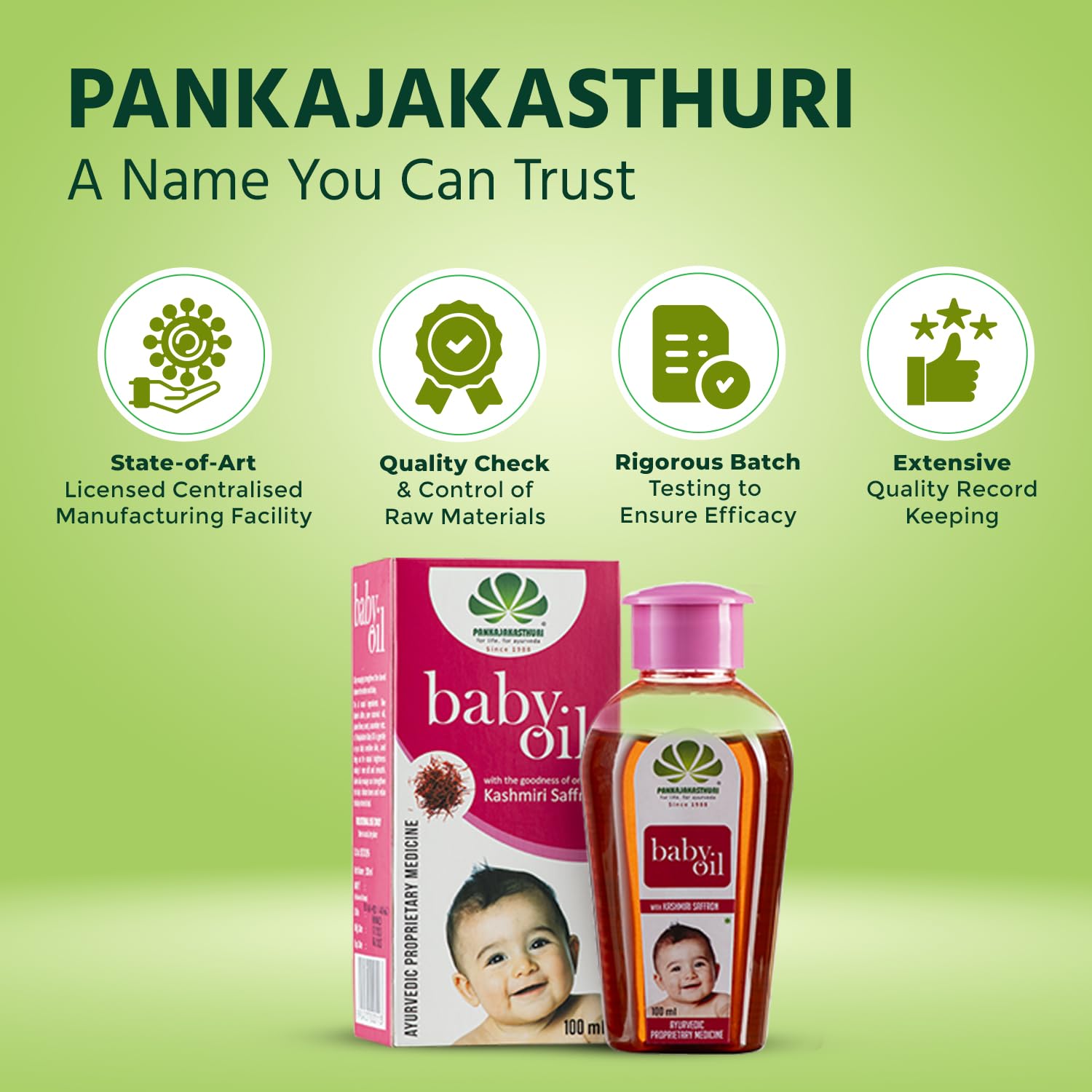 Pankajakasthuri Baby Oil with Kashmiri Saffron - 100ml