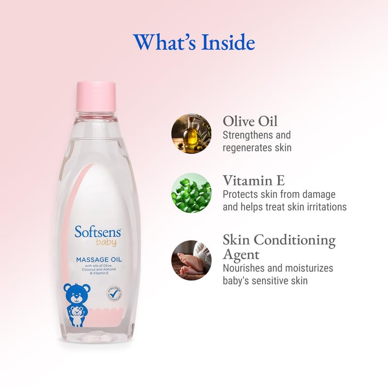 Softsens Baby Massage Oil with Vitamin E & Olive Extracts Free from parabens and harmful chemicals 200Ml (Pack of 2 White)We are committed to creating safe, effective, efficient and sustainable products that deliver real value! Our 5-step approach is our set of guiding principles for any innovations and product development.