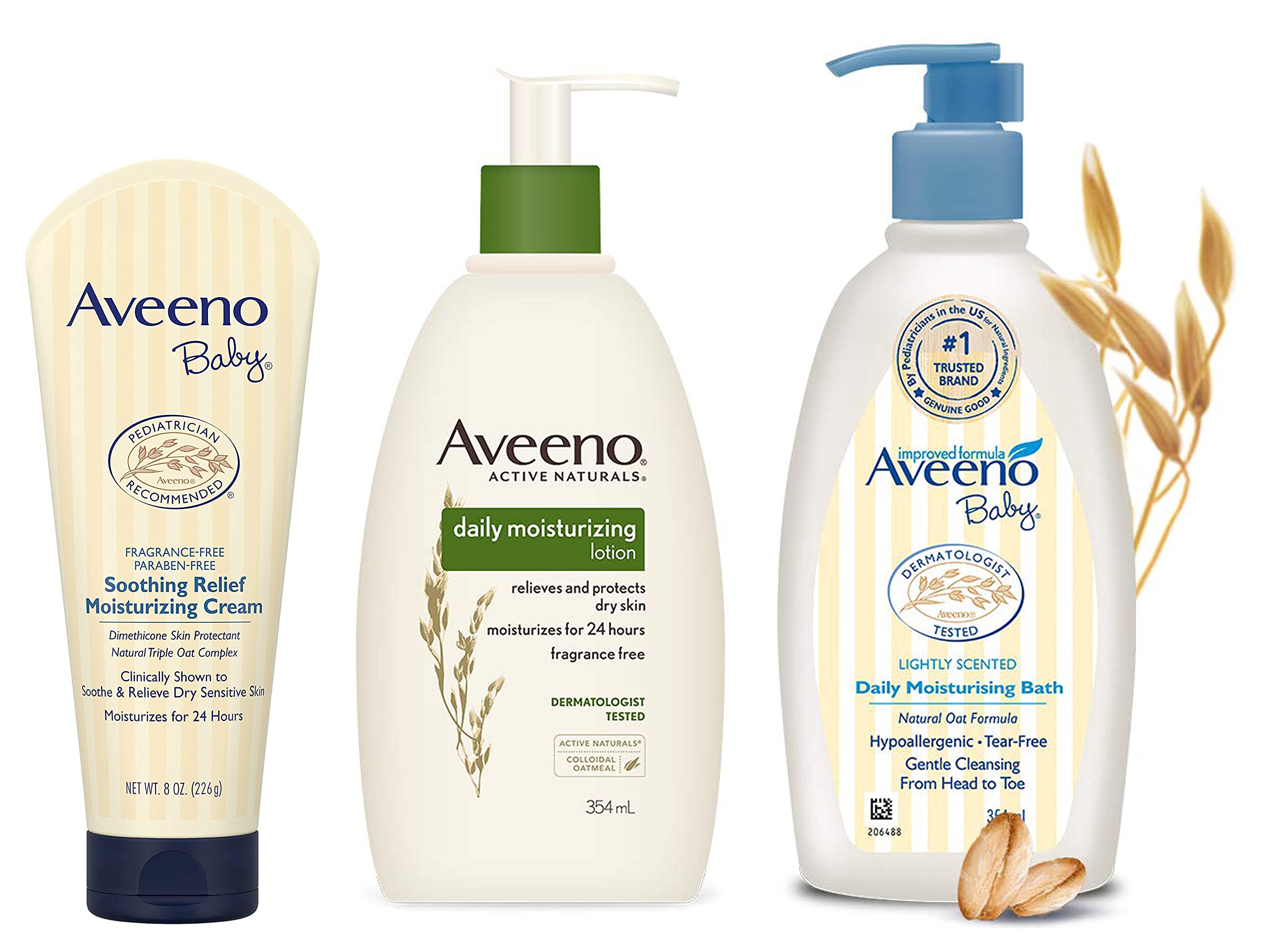 Aveeno Baby Soothing Relief Moisture Cream Fragrance Free 227g & Aveeno Daily Moisturizing Lotion For Normal To Dry Skin With Oats 354mlAveeno Baby Daily Moisturising Bath for Delicate Skin Cream