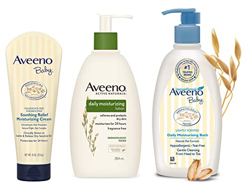 Aveeno Baby Soothing Relief Moisture Cream Fragrance Free, 227g & Aveeno Daily Moisturizing Lotion For Normal To Dry Skin With Oats, 354mlAveeno Baby Daily Moisturising Bath for Delicate Skin Cream