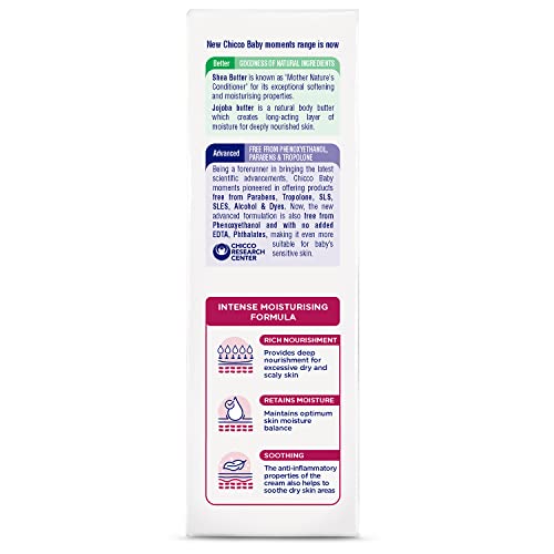 Intense Moisturizing Formula: The all new Chicco Baby Moments Rich Cream with new advanced formula provides extra rich moisturization by maintaining optimum skin moisture balance. With its anti-inflammatory properties the cream soothes dry skin areas; Bet