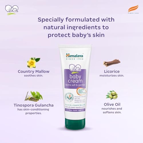 Himalaya Baby Cream Keeps Skin Soft and SupplePreserve the natural softness of your baby skin with Himalaya Baby Cream. It is specially formulated to provide your little bundle of joy with relief from rubbed elbows tender nose crawler's knee and chapped cheeks. This cream is enriched with olive oil which has the goodness of vitamin E and works wonderfully to moisturize nourish and hydrate the delicate skin of your baby. You can rely on Himalaya Herbals Baby Cream to keep your child's skin soft healthy and supple. It has antimicrobial properties and is soothing on the skin.Rich IngredientsInfused with the antioxidant country mallow this baby cream has nourishing properties that shield your baby skin from germs. It also contains licorice that helps relieve symptoms of redness swelling and itching and it is very effective in soothing and protecting the precious skin of tiny tots. Himalaya Herbals Baby Cream 50ml is available at an irresistible price online and is an excellent babyhower gift. This cream is easy to apply on delicate areas such as knees elbows and face after baby bath. However care should be taken to avoid application around the eye area of the little one.Ideal for: Hydrating and nourishing skinAge: Newborn and upContains: Vitamin E enriched olive oil Country Mallow LicoriceMildness tested for use on delicate skin of babies