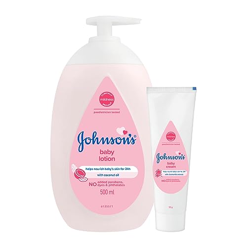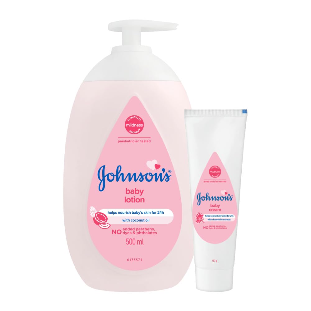 When a baby is born her skin is most delicate. That's why we perfected our formulas over 125 years so they are now more gentle to give her the best care. Johnson's Baby lotion has been improved to slow down moisture loss by hydrating skin locking in moisture and creating a protective barrier to keep moisture in and dryness out. This clinically proven long lasting formula continuously protects baby's skin for up to 24 hours keeping it feeling healthy and baby soft. Johnson's Baby cream is designed with intensive 24-hour moisture. It's fast absorbing formula contains rich emollients that help moisturize and preserve skin's natural softness to protect your baby from chapped knees rubbed elbows and tender noses. Moms trust Johnson's-always mild gentle and effective.