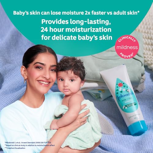 Baby skin is 3 times thinner than adult skin and hence loses moisture very fast. We understand baby's delicate skin needs extra moisture to protect it from dryness so it stays baby soft always. Johnson's baby milk + rice cream is enriched with natural milk extracts and vitamin e with double nourishment to help replenish moisture to leave skin feeling baby soft. Johnson's baby milk + rice cream enriched with goodness of milk proteins and rice nutrients that provide baby with soft and smooth skin all day long. It's fast absorbing formula contains rich emollients and added moisturizers which help to give skin an immediate moisture boost. Studies show that enjoyable and familiar scents have been proven to improve mood calmness and alertness. A mother's loving touch and Johnson's baby cream's mild fragrance can help in awakening your little one's senses to make her feel fresh and help in her growth. Johnson's baby milk and rice range helps reduce dryness roughness and flaking of baby's delicate skin. Moms trust Johnson's - always mild gentle and effective.