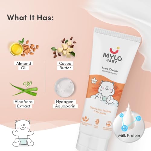 • SOOTHES IRRITATED SKIN: Mylo Baby Cream contains coconut oil & jojoba oil that help reduce inflammation repair skin and soothe itchiness. Almond oil in this baby cream also promotes healthy skin.