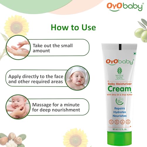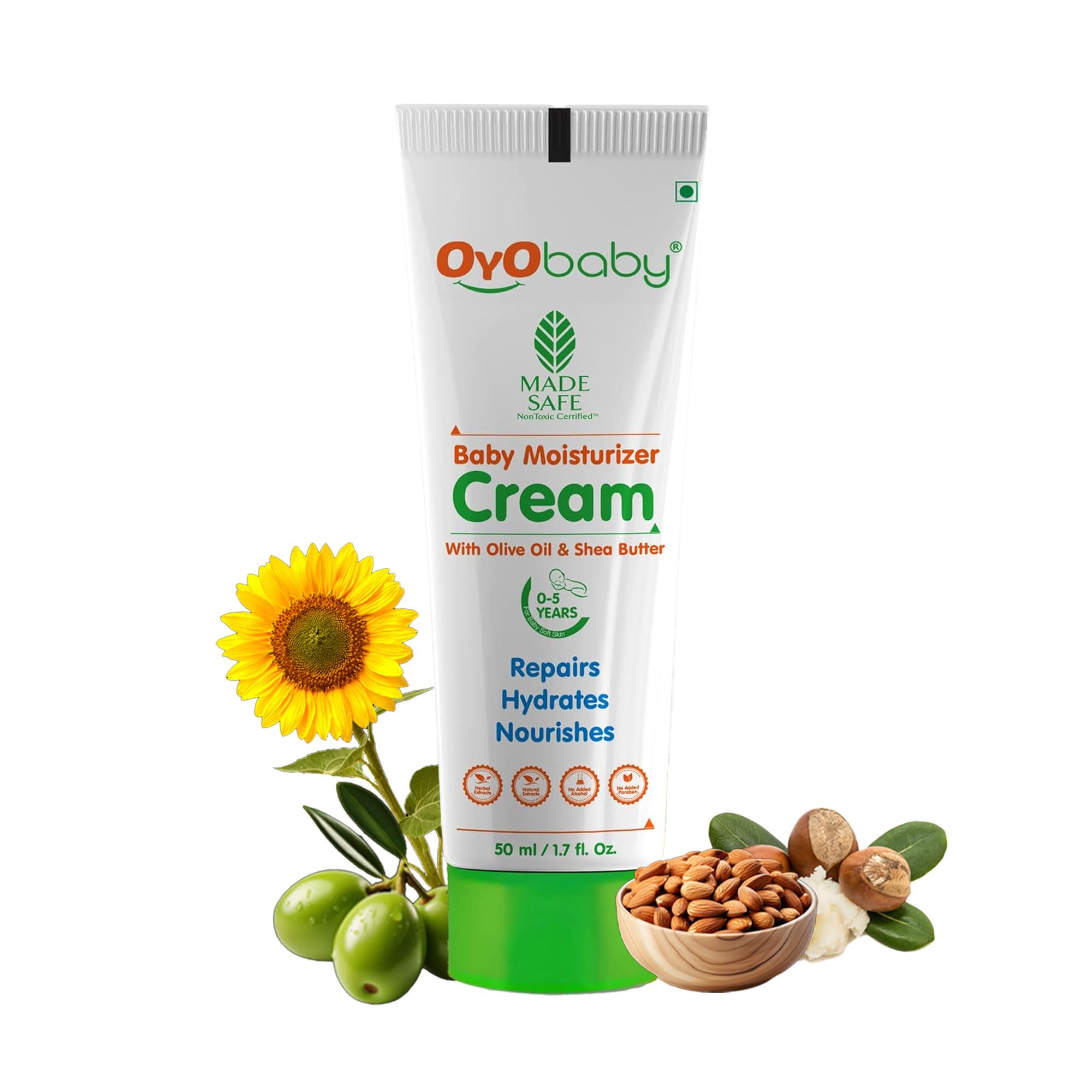 OYO BABY Soft Baby Face Cream, 50g | Daily Moisturizing Cream for Babies with Olive Oil & Shea Butter | Non-Sticky, Prevents Dryness & Soothes Baby's Skin