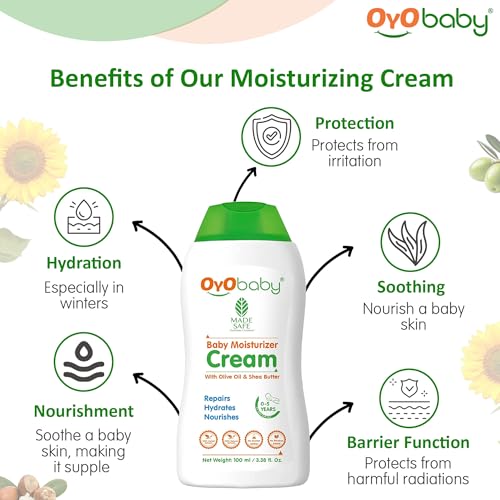 OYO BABY Moisturising Cream for Baby with Olive Oil & Shea Butter for All Skin Type Use Day & Night : - 100ml (Pack of 1)