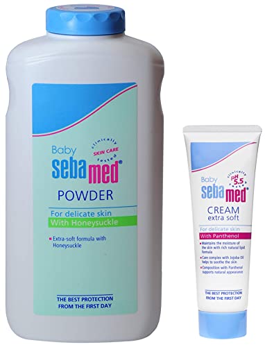 Sebamed Baby Cream Extra Soft 50mlPh 5. 5 + 42% Natural lipids maintain and repair protective skin barrier. Conventional creams have ph 7 which can further damage the skin barrier leading to more dryness. Sebamed baby cream is clinically proven to be effective in atopic babies and soothes baby's sensitive skin. Made in Germany forms a non-occlusive protective film against dryness and irritation rich in panthenol allantoin and chamomile extract the moisturizing and protective complex soothes and regenerates irritated skin easy to apply and readily absorbed42% lipid composition water-in-oil emulsion supports the natural lipid balance pleasant botanical fragrance ideal from one month onwards clinically proven a significant improvement of erythema and rough skin in only eight weeks shown in studies. 56% Reduction in flaking / 2 times increase in lipid levels within 2 weeks * [*source: - adapted from sebapharma product manual sebapharma Germany]0% irritant reactions / almost 0% allergic reactions* [*source: - adapted from sebapharma product manual sebapharma Germany]Sebamed Baby Powder with HoneysuckleSebamed represents one of the leading brands for medicinal skin care with a pH value 5.5 of healthy skin. ll products of the sebamed range contain active ingredients which cleanse and nourish the skin without destroying the natural acid protection mantle. Baby sebamed powder with honeysuckle 200gm extra soft formula with honeysuckle helps prevent heat rashes.