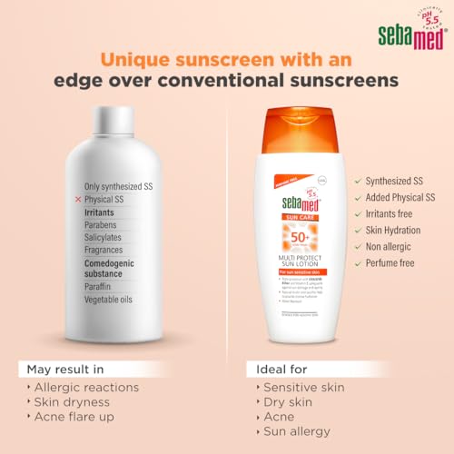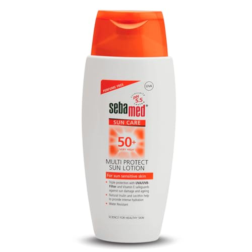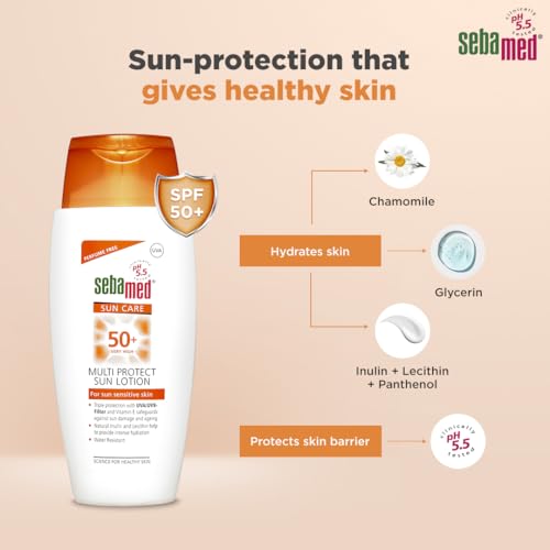 Sebamed Multi Protect Sun lotion SPF 50, 150 ml I UVA/UVB Protection filter I Water resistant sunscreen with pH 5.5 I Vitamin E I men & women I Suitable for children I Clinically tested.