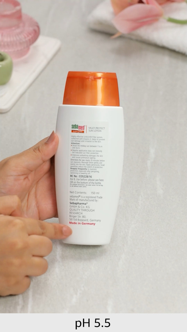 This sun care 50 spf very high multi protect sun lotion from the house of sebamed is in the form of liquid in white color. It comes in 150 milliliters pack and has the following features:- uva filter 98% vitamin e uvb filter 50+ safeguard against sun induced damage & ageing shields against sunburn.
