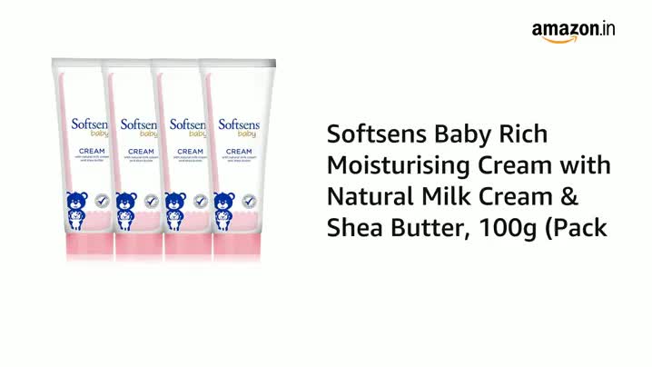 Softsens Baby Rich Moisturising Cream | Enriched with Natural Milk Cream and Shea Butter | Dermatalogically Tested, Hypoallergenic & Paraben Free 100g (Pack of 4)