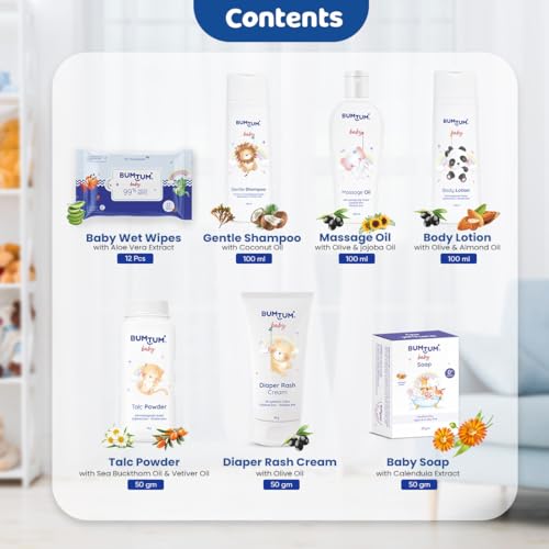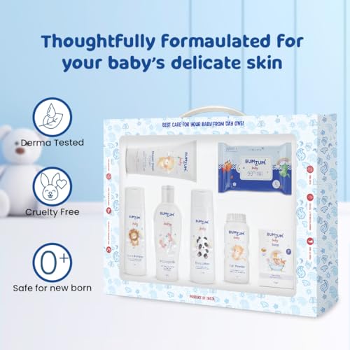 HomeBabyBath & SkinGift SetsBUMTUM Baby Skin & Hair Care Products Gift Box | Newborn Baby Essentials | New Born Baby Gifts | Baby Shower Gift | Combo Pack of 7