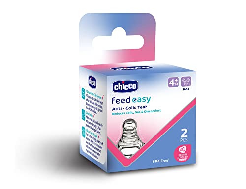 HomeBabyBath & SkinGift SetsChicco Feed Easy Anti-Colic Teat for Babies 4+ Months (Pack of 2) | V-Shaped Anti-Colic System to Prevent Colic, Gas & Discomfort | Fast Flow, Soft Silicon, Spiral Design Reduces Air Bubbles