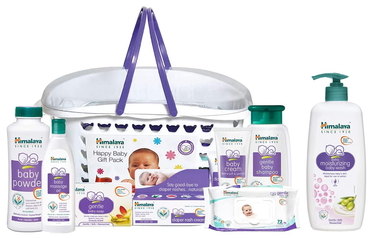 Himalaya Baby Gift Pack BasketPack of 1 setwhiteHimalaya Baby Gift Pack BasketPack of 1 setwhite A Complete Baby Care Gift Basket Himalaya Herbals bring you a complete range of baby skincare products for your little angel's delicate skin. The baby gift pack gives you a whole range of products attractively put together in a compact re-usable basket. Easy to carry this Himalaya babycare gift basket contains Baby Cream 50 ml Baby Massage Oil 100 ml Baby Powder 100 g Diaper Rash Cream 20 g Gentle Baby Wipes 72 count Gentle Baby Shampoo 200 ml and a Gentle Baby Soap 125 g. All these products are dermatologically tested and proven clinically mild enough for daily use on your baby's gentle skin. This gift basket for kids is ideal for naming ceremonies or even for your own little one's personal use. Herbal Protection for Your Precious One The Himalaya baby gift pack is a thoughtful assortment of herbal products and are free from harsh chemicals. For instance its baby cream has olive oil licorice and Country Mallow as key ingredients that nourish protect and provide lustre to your baby's tender skin with their anti-microbial properties. Its baby massage oil has goodness of olive oil and winter cherry that soften the skin tone and provide nourishment for overall growth and development. Infused with the essence of almond oil and Aloe Vera its diaper rash cream has anti-inflammatory anti-bacterial and soothing properties to heal rashes. Cleanse your baby's tender skin with the cooling lotus extracts found in Himalaya baby wipes. Give complete herbal protection to your child with this Himalaya baby care kit. Includes Baby cream 50 ml Baby Massage oil 100 ml Baby Powder 100 g Diaper rash cream 20 g Gentle Baby Wipes 72 nos Gentle Baby Shampoo 200 ml Gentle Baby Soap 125 g Perfect gift for newborns Clinically proven productsHimalaya Extra Moisturizing Baby Wash 400 mlHimalaya Extra Moisturizing Baby Wash is designed to effectively cleanse baby's skin and make it softer and smoother. Formulated with the goodness of Indian Aloe Almond Oil and Olive Oil which are well-known moisturizers to help prevent post-bath dryness. Also contains Milk which is known to soften and improve the skin's texture.
