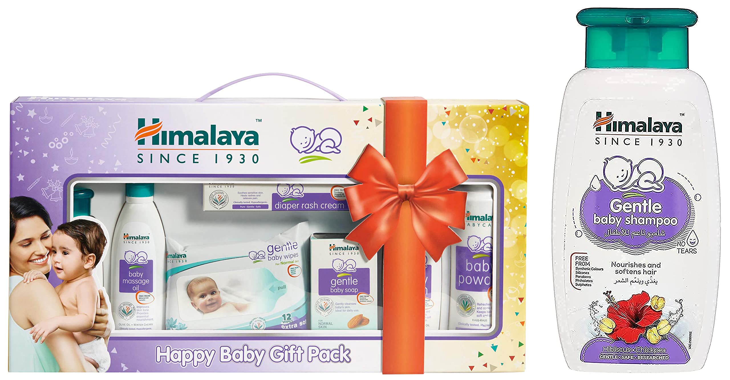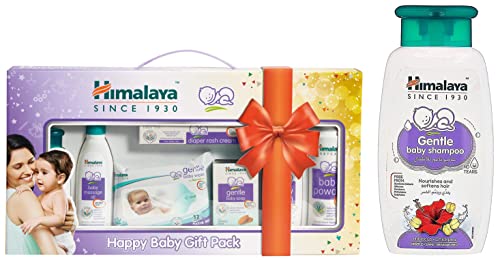 Himalaya Baby Gift Pack SeriesPack of 1 setwhiteHimalaya Baby Gift Pack SeriesPack of 1 setwhite Complete Care for Your Baby Give complete skin care to your little one with the Himalaya Herbal Babycare gift pack. This baby care pack includes a gentle baby shampoo (100 ml) baby massage oil (100 ml) diaper rash cream (20 g) gentle baby soap (75 g) baby lotion (100 ml) baby powder (100 g) and gentle baby wipes (pack of 12). These products that are included in the baby gift pack will soothe nourish and provide gentle care to your baby's skin. Formulated to be 100 percent safe for newborn babies and clinically proven the Himalaya baby gift pack is sure to pamper your little one's sensitive skin. It also makes a great gift for naming ceremonies. Wide Range of Herbal Products This baby gift pack features a wide range of herbal products to protect and nourish your baby's skin. The gentle baby shampoo softens your little one's hair and makes it smooth and shiny while the diaper rash cream effectively treats rashes inflammation and other skin problems. Enriched with herbal extracts and natural oils the moisturizing baby soap baby lotion and nourishing baby oil protect and nourish your baby's skin. You can also make use of the baby powder that is included in the Himalaya baby care pack to keep your little one fresh at all times and the baby wipes to protect your baby from skin rashes. Includes: Gentle baby shampoo (100 ml) baby massage oil (100 ml) diaper rash cream (20 g) gentle baby soap (75 g) baby lotion (100 ml) baby powder (100 g) and gentle baby wipes (pack of 12) Gender: Unisex Clinically proven Safe for newborns and older babiesHimalaya Gentle Baby Shampoo (200ml)Himalaya Gentle Baby Shampoo (200ml) Natural Care for Your Baby's Hair Himalaya Herbals baby care shampoo is enriched with natural sources of protein that leave your baby's hair soft and nourished. This gentle baby shampoo is formulated to cleanse and strengthen your little one's hair without any teary-eyed blues. It is so gentle that your tot is definitely going to love it. Himalaya shampoo is in essence a natural shampoo containing no harsh chemicals. It boasts anti-inflammatory and soothing properties to protect and care for your baby's tender scalp. All in all it is an essential baby care product that helps you get rid of dirt and other harmful infectious particles from your child's scalp without damaging it. Gentle Baby Shampoo for Healthy Baby Tresses The mild and soft Himalaya herbal shampoo moisturises and nourishes your baby's hair improving its texture. Its core ingredients include chickpea hibiscus and khus khus. The protein-rich chickpea leaves the hair strong and shiny while hibiscus acts as a natural conditioner to make it soft and smooth. Khus-khus soothes the baby's scalp with its antibacterial and antifungal properties. These natural ingredients make Himalaya baby care shampoo perfectly safe for daily use. It cleanses disinfects and leaves behind a mild scent and lustre with its ideal pH balance. Easy to use just apply this Himalaya 200ml Gentle Baby Shampoo lather and rinse well to get those shiny baby locks instantly. Brand: Himalaya Age: Newborn and up Contains: Chickpea Hibiscus and Khus khus for smooth silky hair Antibacterial and antifungal properties Hypoallergenic Paediatrician recommended Content: 200 ml