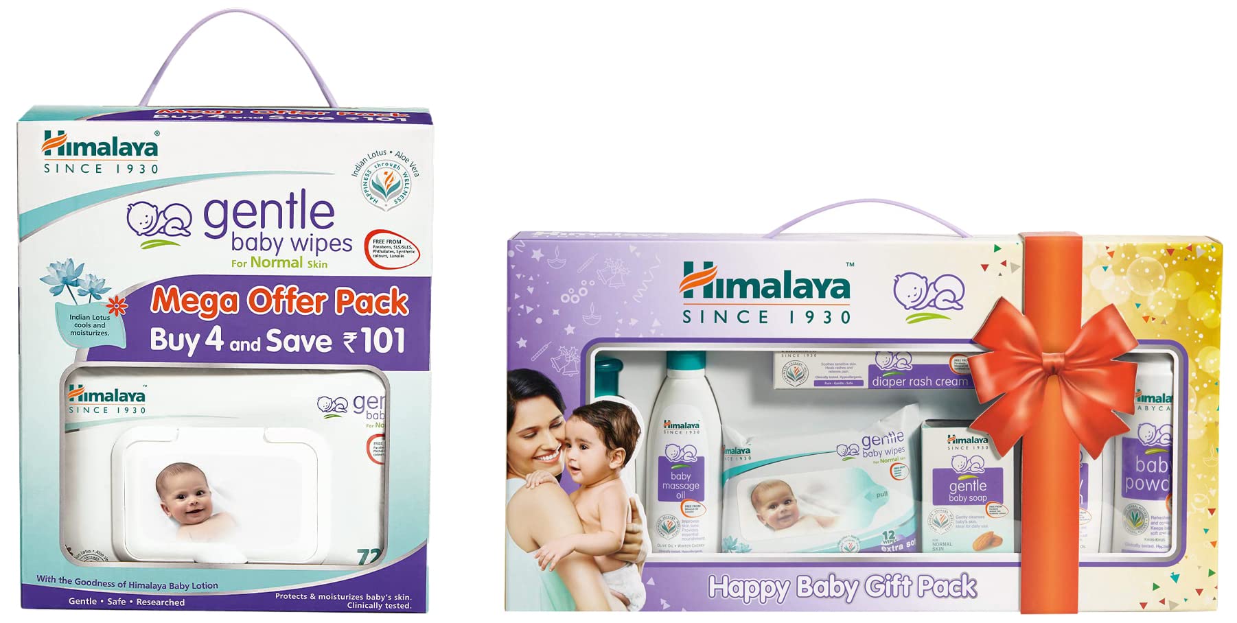 Himalaya Gentle Baby Wipes Mega Offer Pack (4N x 72's) Save Rs.101/-Himalaya Gentle Baby Wipes Mega Offer Pack (4N x 72's) Save Rs.101/-Himalaya Baby Gift Pack SeriesPack of 1 setwhiteHimalaya Baby Gift Pack SeriesPack of 1 setwhite Complete Care for Your Baby Give complete skin care to your little one with the Himalaya Herbal Babycare gift pack. This baby care pack includes a gentle baby shampoo (100 ml) baby massage oil (100 ml) diaper rash cream (20 g) gentle baby soap (75 g) baby lotion (100 ml) baby powder (100 g) and gentle baby wipes (pack of 12). These products that are included in the baby gift pack will soothe nourish and provide gentle care to your baby's skin. Formulated to be 100 percent safe for newborn babies and clinically proven the Himalaya baby gift pack is sure to pamper your little one's sensitive skin. It also makes a great gift for naming ceremonies. Wide Range of Herbal Products This baby gift pack features a wide range of herbal products to protect and nourish your baby's skin. The gentle baby shampoo softens your little one's hair and makes it smooth and shiny while the diaper rash cream effectively treats rashes inflammation and other skin problems. Enriched with herbal extracts and natural oils the moisturizing baby soap baby lotion and nourishing baby oil protect and nourish your baby's skin. You can also make use of the baby powder that is included in the Himalaya baby care pack to keep your little one fresh at all times and the baby wipes to protect your baby from skin rashes. Includes: Gentle baby shampoo (100 ml) baby massage oil (100 ml) diaper rash cream (20 g) gentle baby soap (75 g) baby lotion (100 ml) baby powder (100 g) and gentle baby wipes (pack of 12) Gender: Unisex Clinically proven Safe for newborns and older babies