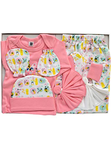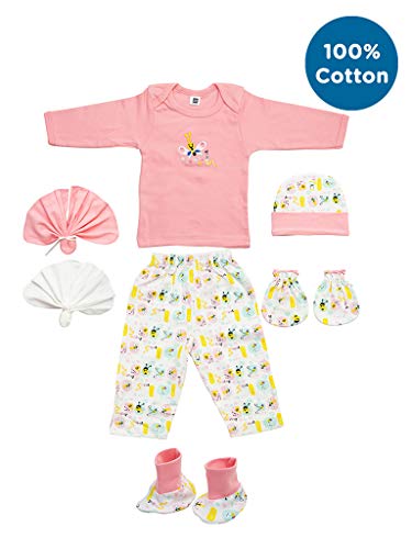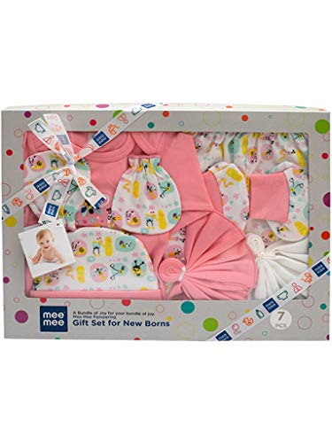 HomeBabyBath & SkinGift SetsMee Mee New Born Baby Gift Set | Soft Cotton Clothing Essentials for Infants/Baby Girls, Boys | Baby Shower Clothing Hamper (7 Pieces, Pink)| Ideal Gift for New Born Baby